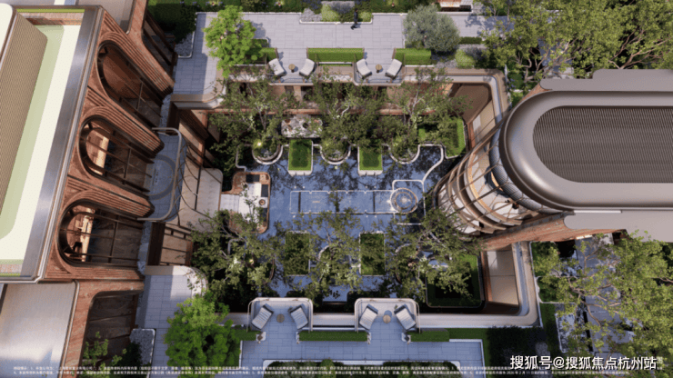 从超50米轩阔门仪的门庭起步,经缦水华庭、下沉庭院,再到湾畔花园,最后抵达单元入户,层层递进.
