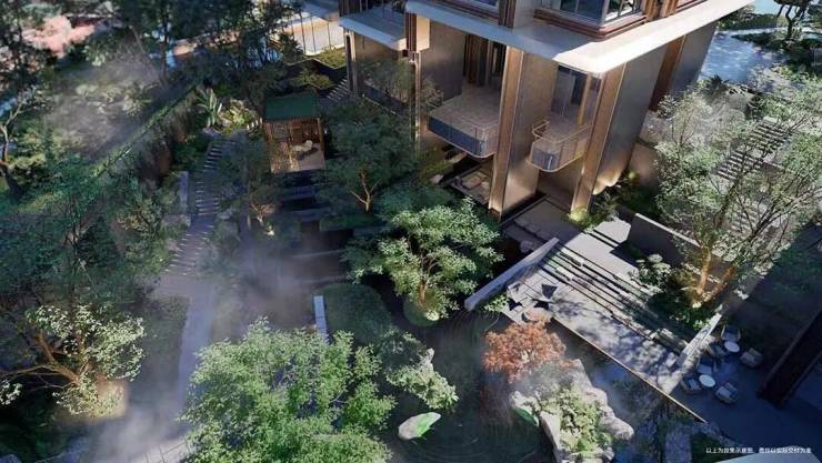 园林首创近7米垂直高差的“立体峡谷景观”,结合5-8.3米全架空层,形成14米高差的全龄剧场,将山川溪谷引入都市核心。金茂主动放弃了中央位置一套本可以做的大户型,腾出空间,打造了一个架空的悬浮观景平台,每一栋的架空层,都变成了视野通透的“珠光宝盒”。