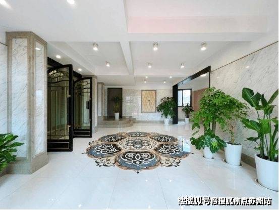 每栋楼也都是地上地下双入户大堂的设计,一层入户大堂地面采用了曼陀罗拼花造型,而且都是纯手工切割技术打造的定制款,造价颇高。