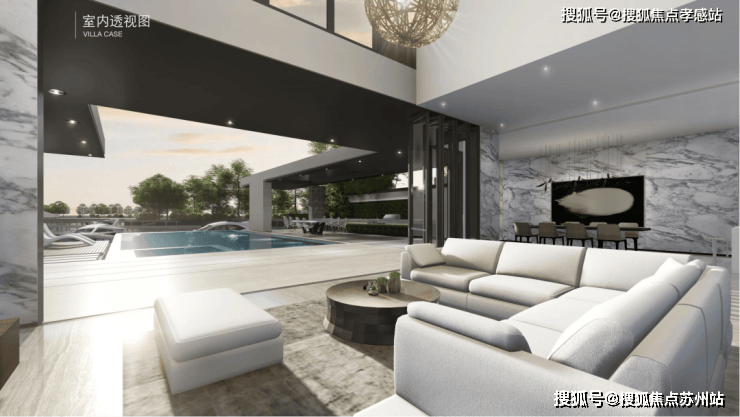 北入户的190+290房型,一层朝南直面庭院和泳池,如果配上整扇的落地玻璃移门......