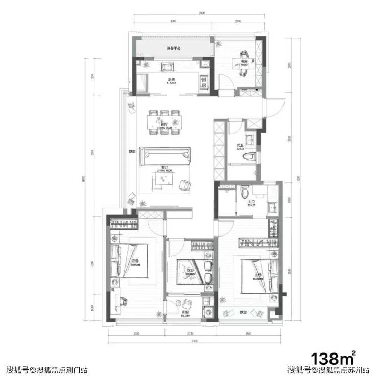 建面约96㎡户型整体采用主卧套间设计,三开间朝南。充分利用兼顾舒适性的同时,室内空间布置可开放式厨房