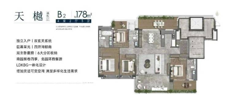 同时都做了LDKBG进化,客厅、餐厅、厨房、阳台和露台整合为开放式复合空间,进行多元场景组合
