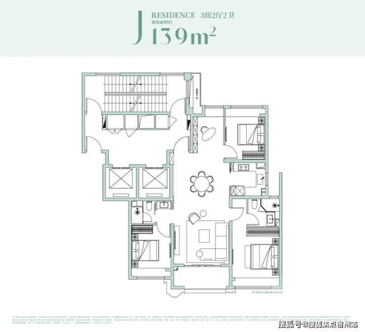 该户型是经典的四叶草布局,四开间分布在四角,兼顾私密与互动,是二胎家庭的优选;