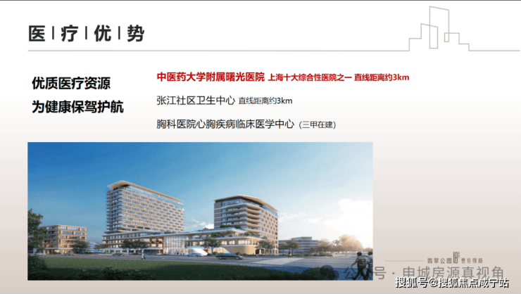 医疗配套:近三甲医院(华山医院、瑞金医院张江分院),医疗服务完善.