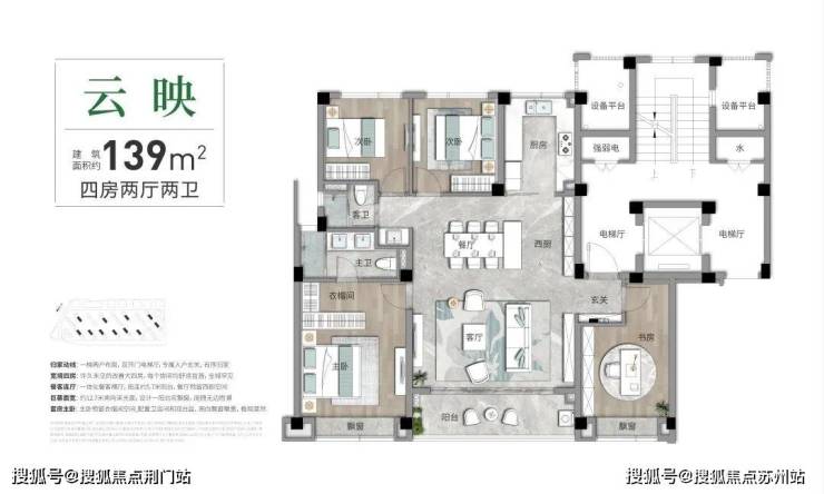 和映云筑全盘皆为一梯两户,所有房源南北通透,拥有大面宽、独立玄关与南向跑道式阳台,139㎡、180㎡户型还是双开门电梯厅,私密感再次升级。