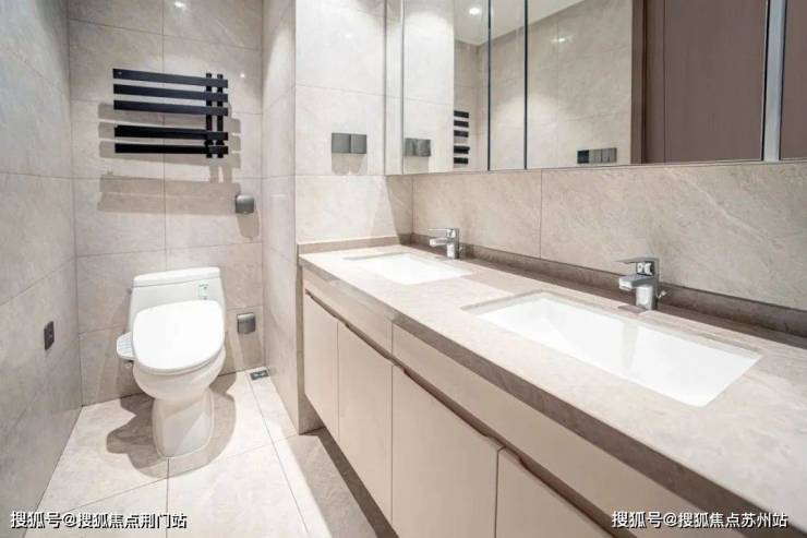 主次卫淋浴都配了顶喷,次卫有松下暖风机,主卫则是电地暖+科勒智能马桶盖+电热毛巾架,为杭州漫长湿冷的冬季做足了预案。