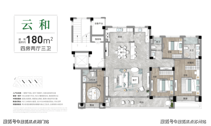 再对比一下和映云筑的建面约180㎡吧,堪称有过之而无不及的新一代神户型: