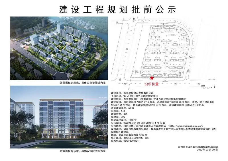据公示信息显示,WJ-J-2021-029 地块住宅项目占地面积约 70037.77㎡,总建筑面积约 185578.78㎡,其中,地上建筑面积约 126067.91㎡,地下建筑面积约 59510.87㎡,计容建筑面积约 126067.91㎡。建设单位:苏州星投建设发展有限公司;公示期限:2022 年 3 月 30 日至 2022 年 4 月 13 日。