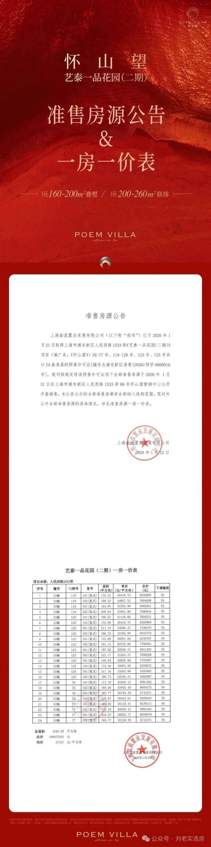 本批次一房一价表如下: