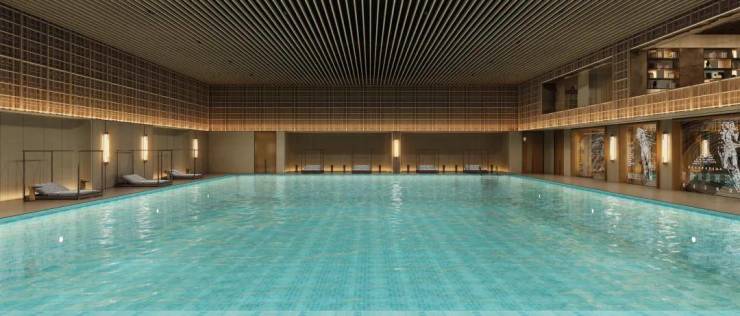 但在天安1号的会所中,拥有的是挑空两层的泳池,尺度感超强,营造出堪比专业赛事级场馆的空间感受。