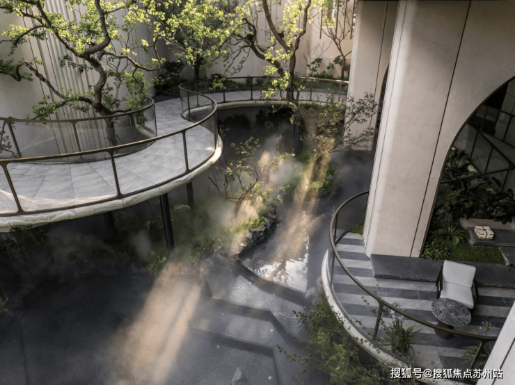 园林景观设计巧妙融合了姑苏山水意境,用风雨连廊串联各个景观区域,种植了文冠果、樱花等珍稀绿植,并分设琢玉园、康养花园,实现全龄段自然互动与美学体验。