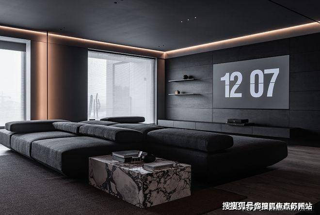 黑色所代表的并非是绝望和深渊,黑色在这个室内象征着宁静和整洁,以高度的统一感创造空间的和谐,打造了高品质的居所,规整的沙发、地毯以及嵌入墙体的壁龛,都汇集于此,用品质诉说着家的整洁。