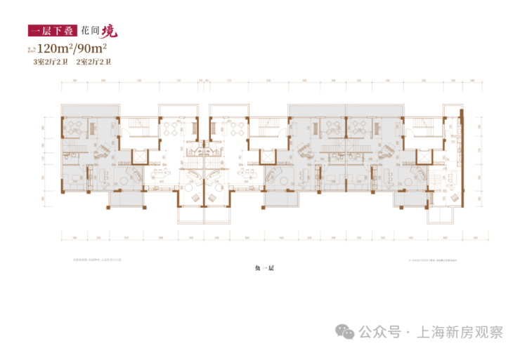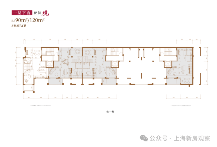 项目主打3层的超低密洋房产品,另有3套联排产品,户型类型丰富;洋房为创新的多层退台式洋房,层高高于传统常规洋房产品,3.3-3.6m层高对标别墅产品层高.