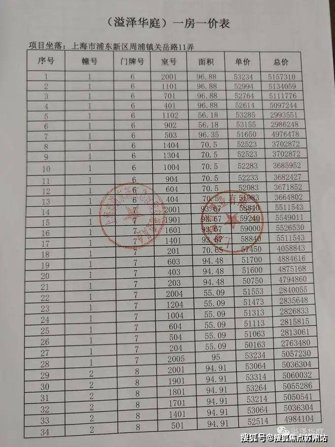 最后,附上完整一房一价表: