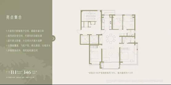 · 146㎡四房:真四房功能性+奢阔尺度,适配多孩家庭或三代同堂需求。