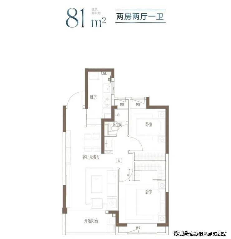 建面约81㎡2房2厅1卫▼