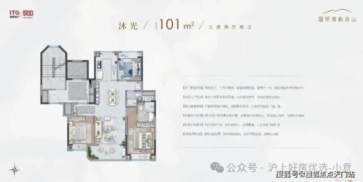 在户型规划上更是凭借小高层无连廊+飞机户型的设计优势,将室内的实际使用空间做到了最大.所以,虽然户型的建筑面积是约101㎡的3房,但整个空间的尺度感却能匹配改善型的宽绰3房.