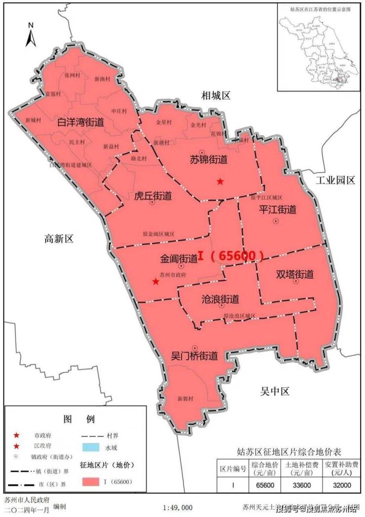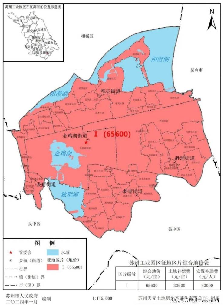 姑苏区和苏州工业园区整体划定为区片Ⅰ,执行标准为65600元/亩,其中土地补偿费33600元/亩,安置补助费32000元/人。