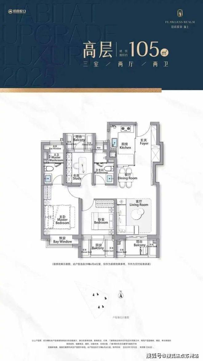 建筑面积约105㎡三房,进阶改善绝版“三阳台”户型,主力总价段约700万级,部分房源总价约650万级。招商臻境售楼处电话:400-8787-554