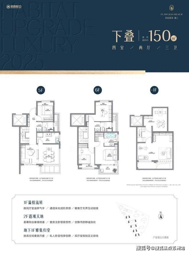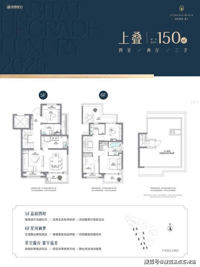 项目另有建面约95㎡ 3房户型及叠加别墅产品,叠加别墅总价约1100万级,户型图如下:招商臻境售楼处电话:400-8787-554