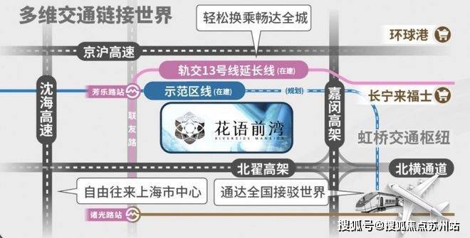 交通方面,项目直线距离虹桥枢纽约5.5km,如自驾出行,周边有京沪、沈海、沪常等高速公路;距离「芳乐路」仅约600米,该站点集齐13号线(在建中)、25号线(规划)、示范区线(在建中)三轨交!未来还将在该站点上进行高强度的TOD开发!