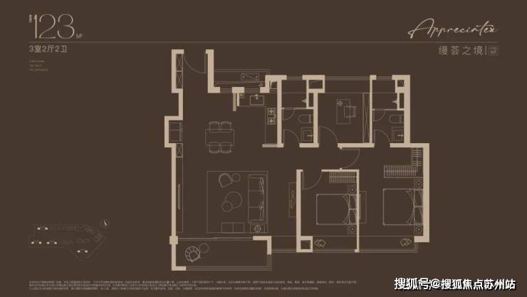 建面约123㎡3房户型,户型方正,三口之家的改善进阶之选!巧妙预留X空间,既可成为客厅空间的延伸,也可独立成室,实现更多功能想象。约12.5米南向面宽,搭配270°宽景阳台,窗外美景一览无余。