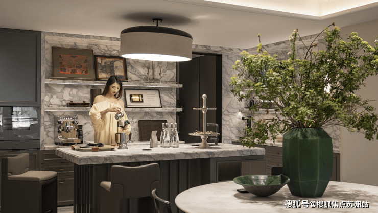 餐厅空间按照私宴标准打造,1.1*2.3米的超大岛台兼具颜值及功能。