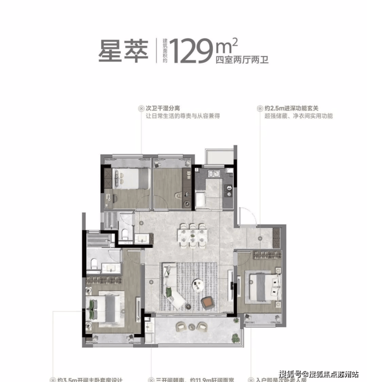交付标准:精装修交付(含地暖,中央空调,新风系统三大件)