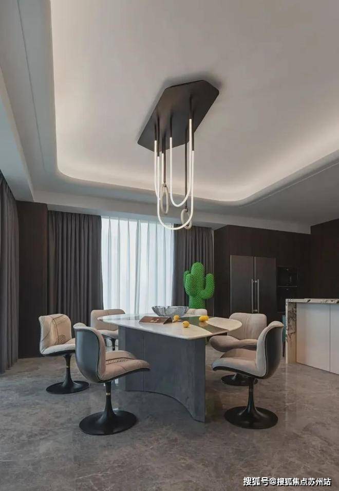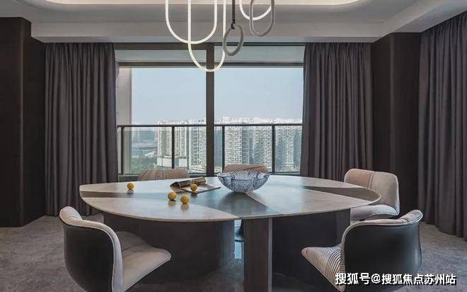 昆山保利拾锦东方售楼处电话☎:400-8828-814(售楼处预约看房热线)恰到好处的曲线设计,如同行云流水般自然流畅,不仅为就餐区域勾勒出优雅的轮廓,更在无形中增添了几分柔美与温婉。
