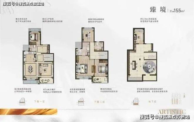 - 叠墅层高:首层约3.4米,二层约3.2米,地下室更达5.35米,宽敞舒适