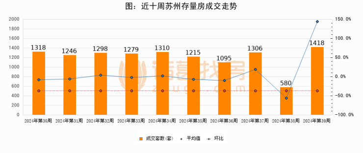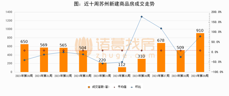 【苏州成交周报】第39周新房成交910套,二手房1418套,涨价房源2985套