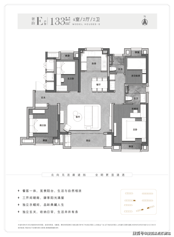 此次户型覆盖建面约82-133㎡2-4房,面积段选择空间多,可以满足不同阶段购房者的需求!其次是一梯两户。项目所有户型均为一梯两户的设计,即便最小户型也是如此,结合前文提到的梯控设计,舒适性更高,私密性更强!最后是无连廊设计。前面说到项目均为12-14F的纯小高层设计,所有户型都没有连廊,得房率更高,通透性更好!