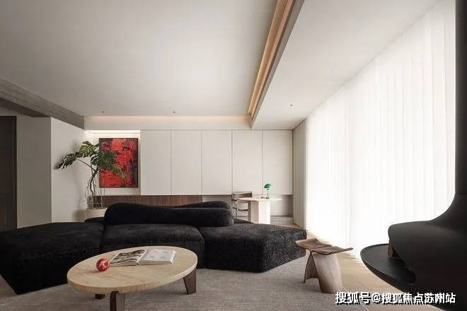空间内随处可见的留白是设计赋予居住者自由思考的维度,同时也是空间灵动感的源泉,浅色地毯、L型沙发、皮革躺椅让家充盈且实用了起来。