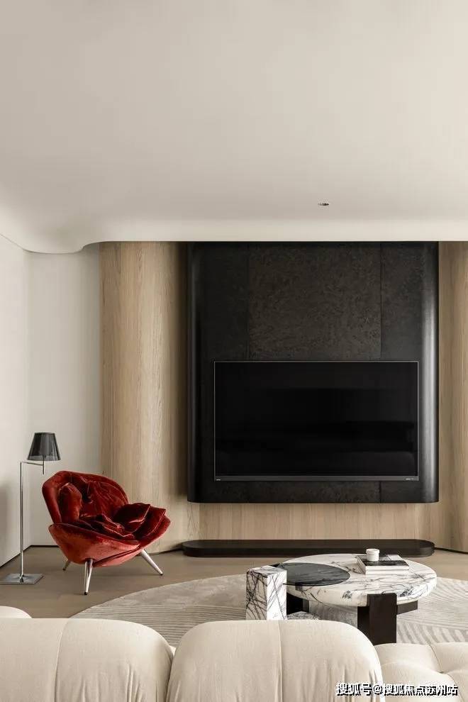 凭借温柔的弧形,优化了原始梁柱的琐碎感和锐利感,与木元素或纯色调糅合,让光影自由地流动。以玫瑰为灵感创作的单椅装点一隅,贵雅无比,茶几以叠层魅力与之对话,达成酝酿风雅的共识。