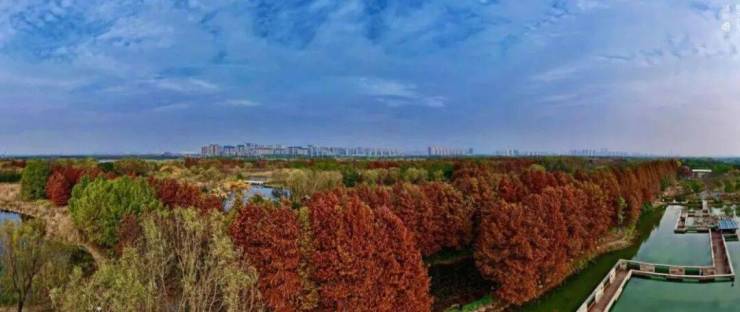 公园四季皆景,春季千亩芦苇新芽吐绿;夏季荷塘月色50余种荷花竞放;秋季芦花飞舞、水杉渐染;冬季红杉映日、候鸟栖息。