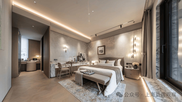 三楼主人层:媲美五星级酒店行政套房的顶层空间,以“超大衣帽间+休息区+四分离卫浴+露台观景区”进阶主人至高享乐。移步环幕露台,无可复制的多面瞰景视界,将百年街区胜景与自然诗意私藏。
