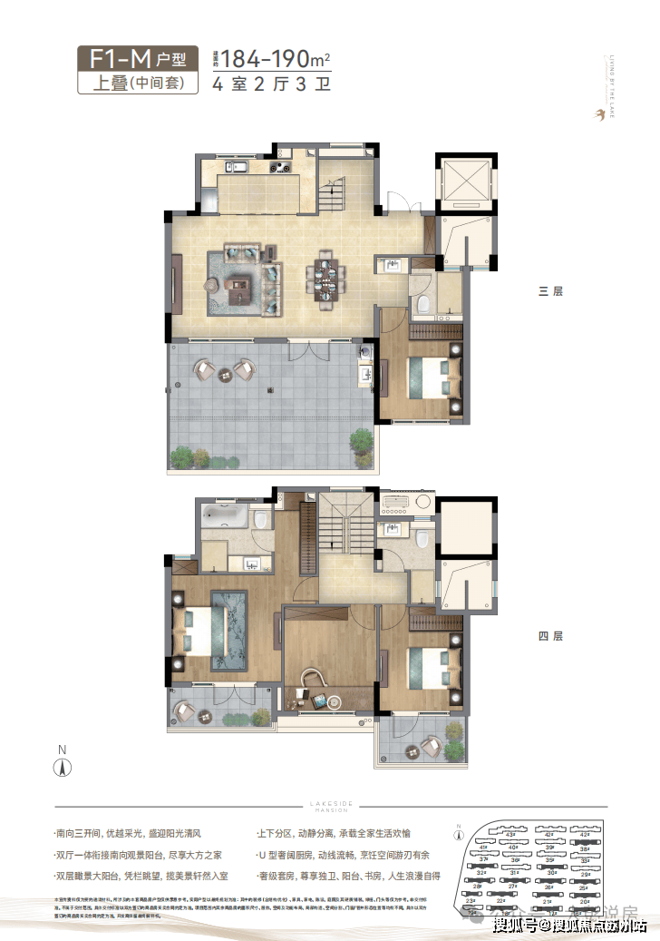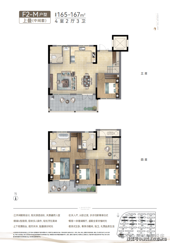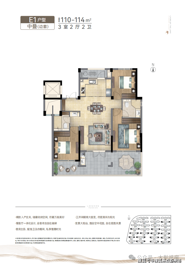 将新亚洲元素植入现代建筑语系,坡屋顶、深挑檐中式元素,采用大面蓝灰色LOW-E玻璃,大面宽、大开间、全明通透的湖景洋房,以“中央空调+新风系统+地暖”全系精装交付,诠释洋房生活的格调。