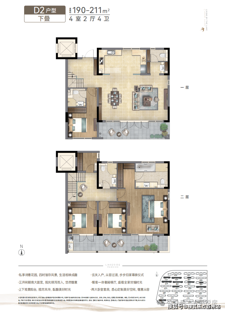 【产品】建筑面积约114-230㎡中式叠院;建筑面积约92-112㎡湖景洋房