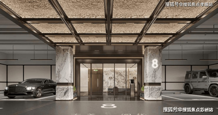 精选雪山银狐天然透光石材,采用高难度的弧形设计与金属格栅腰线相结合。定制的地下入户大堂,延续首层入户大堂的高标准材质,选用雪山银狐天然透光石材,营造出奢华的生活质感。优雅的艺术地库空间,古铜色金属与水波纹玻璃的质感搭配,构建出璀璨的星空穹顶,模拟自然光线随时间变化的动态效果,光洁明亮的水磨石车道,精心雕琢出格调十足的归家之路。