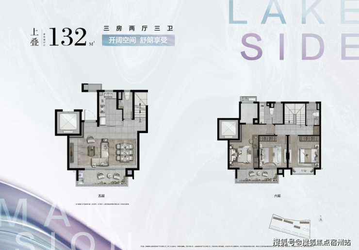 建面约132㎡上叠户型图
