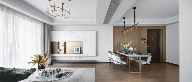 与背后精心打造的的酒柜浑然一体,让业主从归家首站就能倍享归家尊崇感.