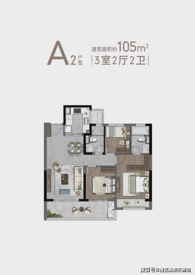 项目 户型涵盖105~143㎡,后期还有大户型,但从目前来看,主要是刚需/刚改定位,户型中规中矩,最小的105户型也有2卧朝南。