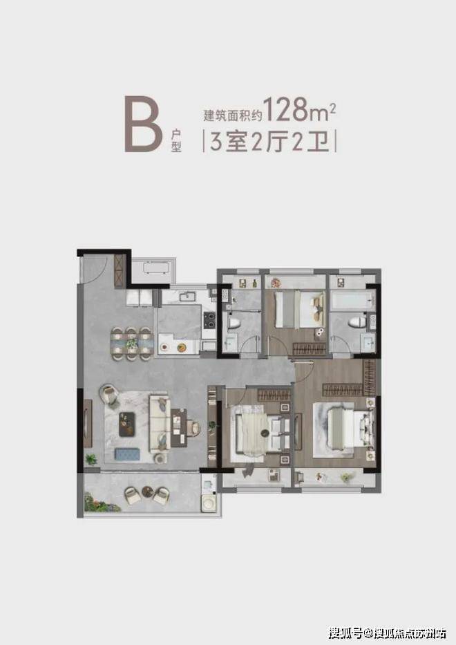 户型面积:约105㎡、约128㎡、约143㎡、约169㎡四个户型。