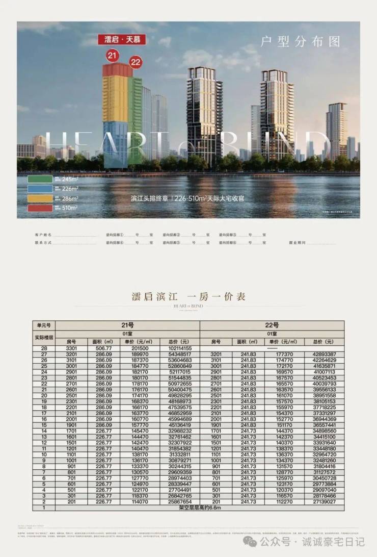 西边套2~14F:226㎡,总价约2586-3300万(6F起可看江)