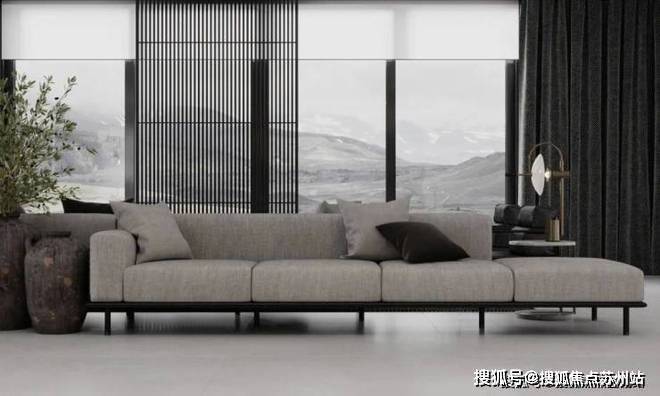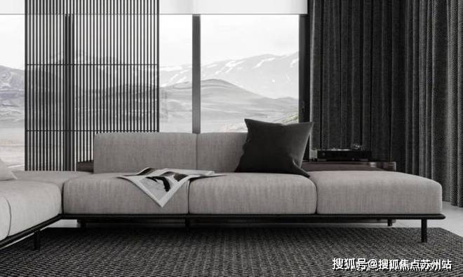 客厅以黑灰的配色提升了整体的高级感。落地窗将户外的美景都容纳于空间中的同时,也提升了客厅的开阔与光线的饱和。