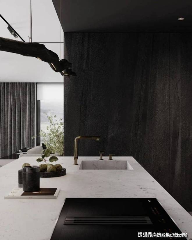 The design of the kitchen is like a work of art and a high-end restaurant. Simple line with a little industrial style design. The open kitchen and the integrated pattern add a visual extension effect.