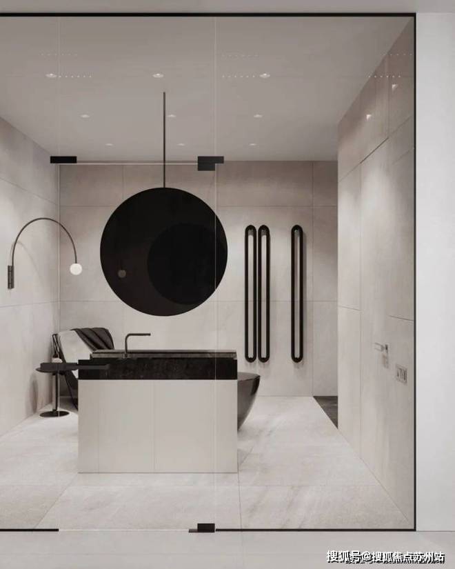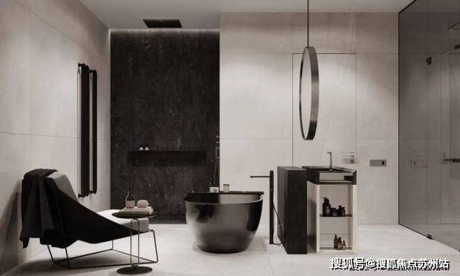 非常现代的洗浴间,用大面积的白色搭配了黑色的浴缸和镜子边框,整体不失单调,却非常奢华。