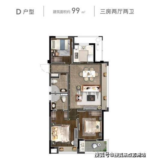 产品类型:规划8幢15-17F小高层,建面约98方舒适三房、约109方/139方改善四房