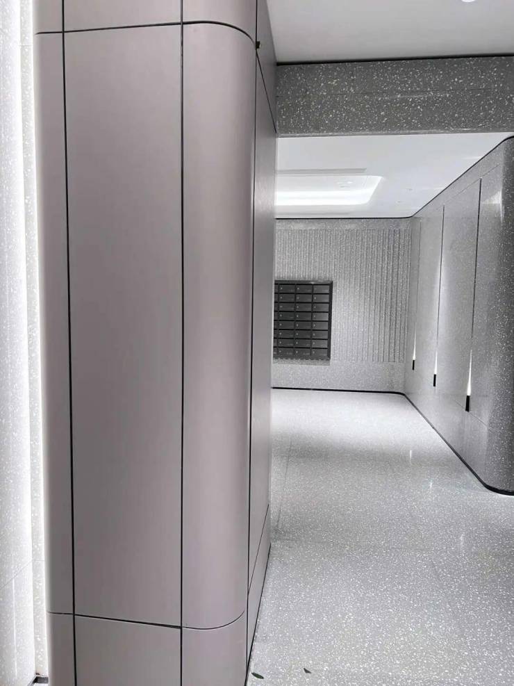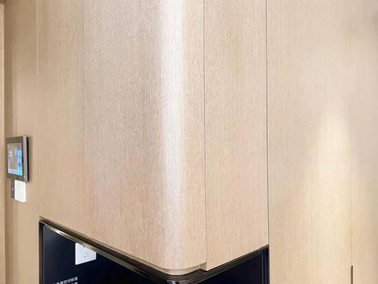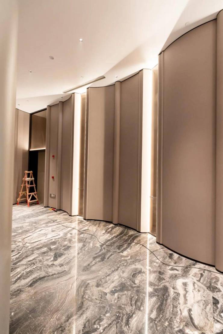 另外,公共区域的圆弧包角采用的是龙骨加铝合金板,全覆盖皮革,细节彰显品质。