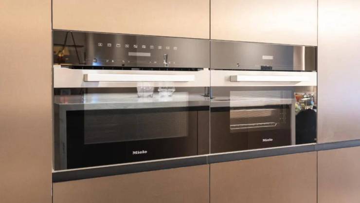 大金的新风系统、中央空调,德国品牌旭格大开面门窗,滨特尔的前置过滤系统和末端直饮系统,瑞士吉博力,Miele的蒸炉、微烤一体机等等,品尊国际几乎把所有角落都“贴上了金”。